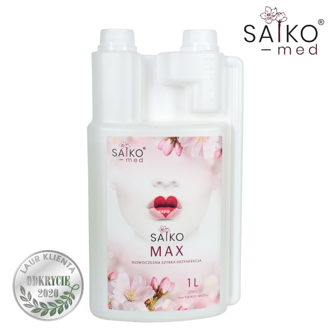 Saiko Max to wydajny koncentrat bez aldehydów i fenoli do jednoczesnego mycia i dezynfekcji dużych powierzchni oraz nieinwazyjnych wyrobów medycznych jak unity, łóżka, fotele zabiegowe itp.Preparat może być stosowany również w gabinetach kosmetycznych, fryzjerskich, spa, fitness oraz gabinetach masażu. Zalecany jest także do dezynfekcji poprzez zanurzenie oraz do wyrobów medycznych ze szkła akrylowego. Nie wymaga spłukiwania jednak w przypadku dezynfekcji akcesoriów mających kontakt z żywnością zaleca się spłukanie powierzchni wodą.