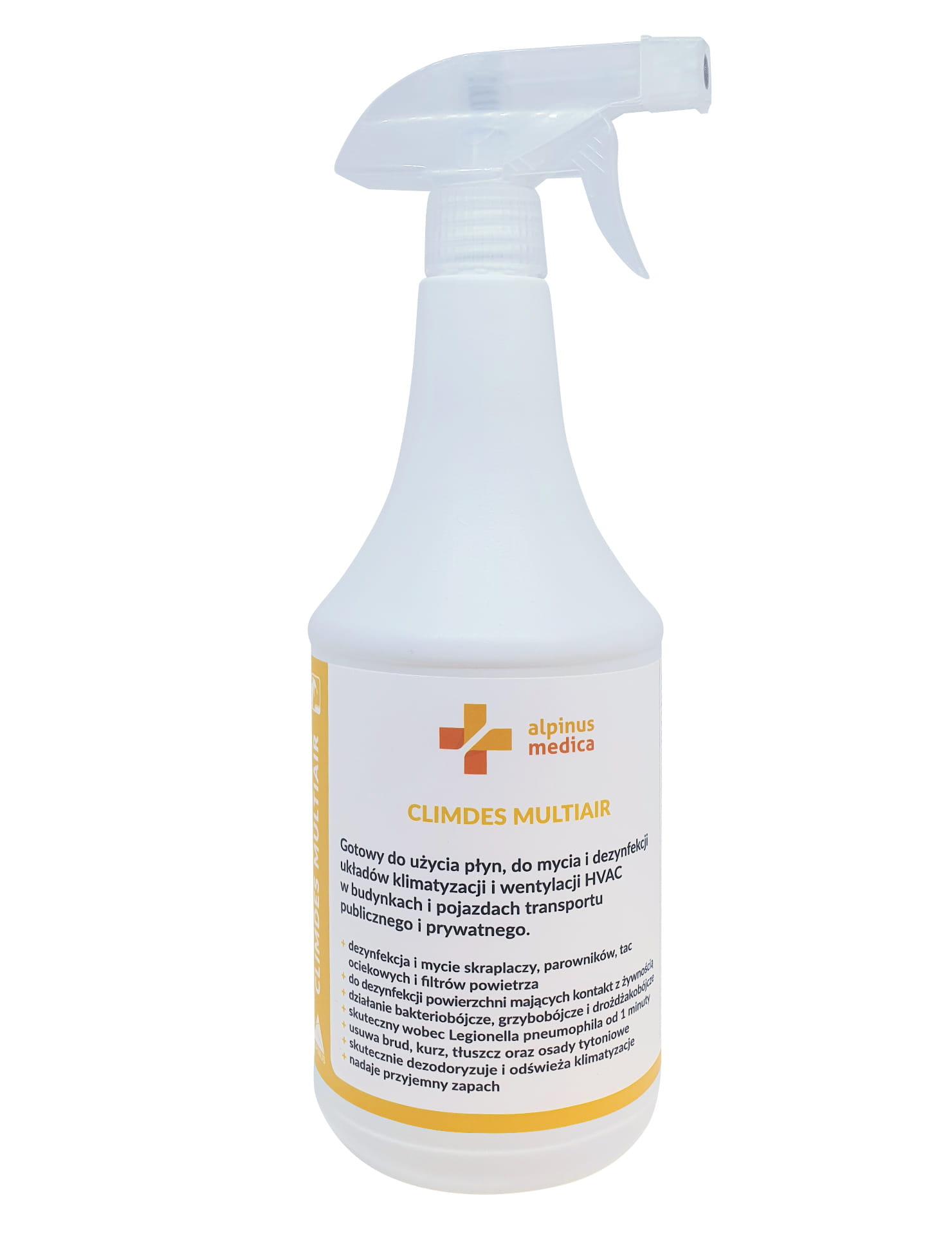 Produkt do mycia i dezynfekcji układów klimatyzacji i wentylacji HVAC. Gotowy do użycia płyn, do mycia i dezynfekcji układów klimatyzacji i wentylacji HVAC w budynkach i pojazdach transportu publicznego i prywatnego oraz powierzchni i urządzeń mających jak i niemających kontaktu z żywnością.
